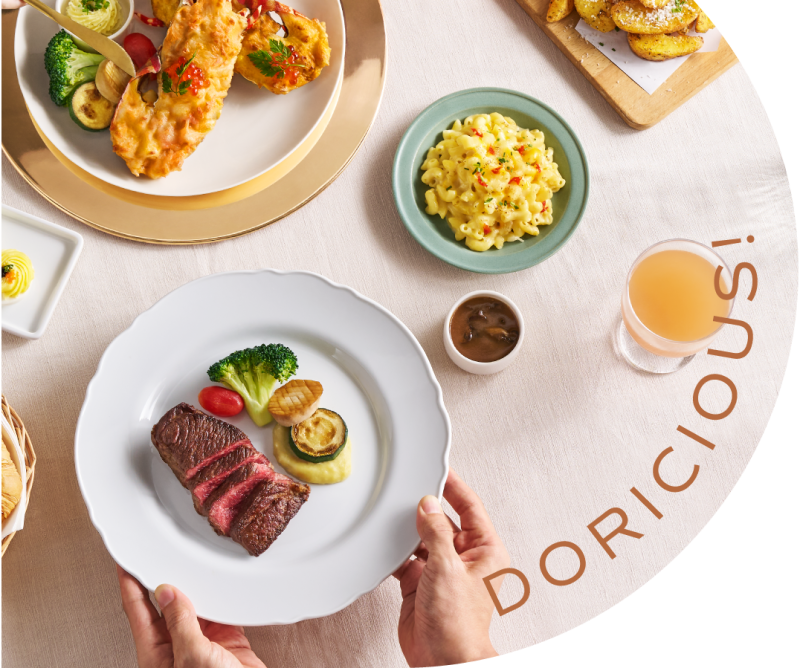 新鮮龍蝦、肋眼牛等嚴選海陸食材,料理食材最佳口感,研發風味醬汁激盪美味豐富層次!